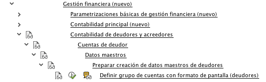 Definir grupo de cuentas con formato de pantalla (deudores)
